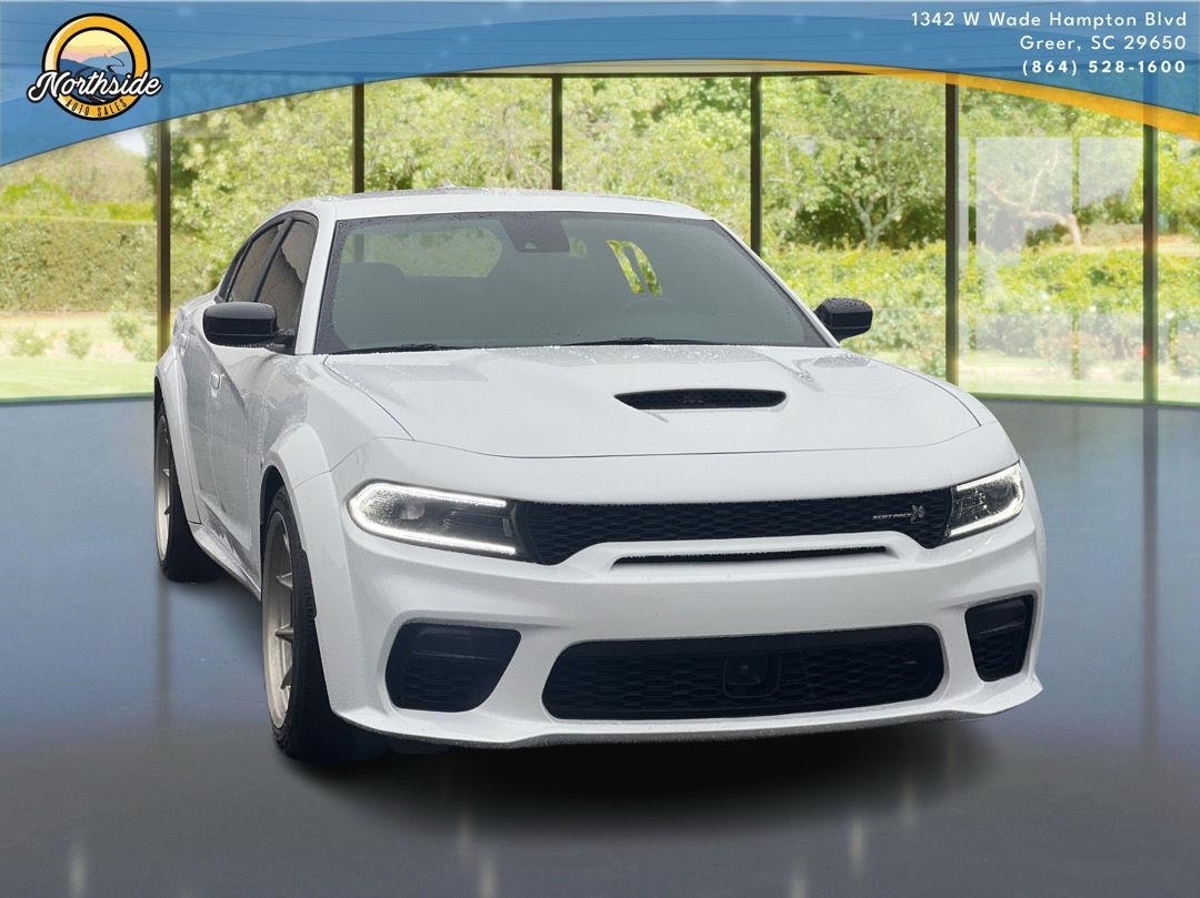 This 2023 Dodge Charger Scat Pack Widebody, has a White Knuckle Clearcoat exterior and an Black interior color. 15,322 miles. Stock Number 3219. Visit us today at 1342 West Wade Hampton Greer SC 29650 or call us at (864) 244-8880.